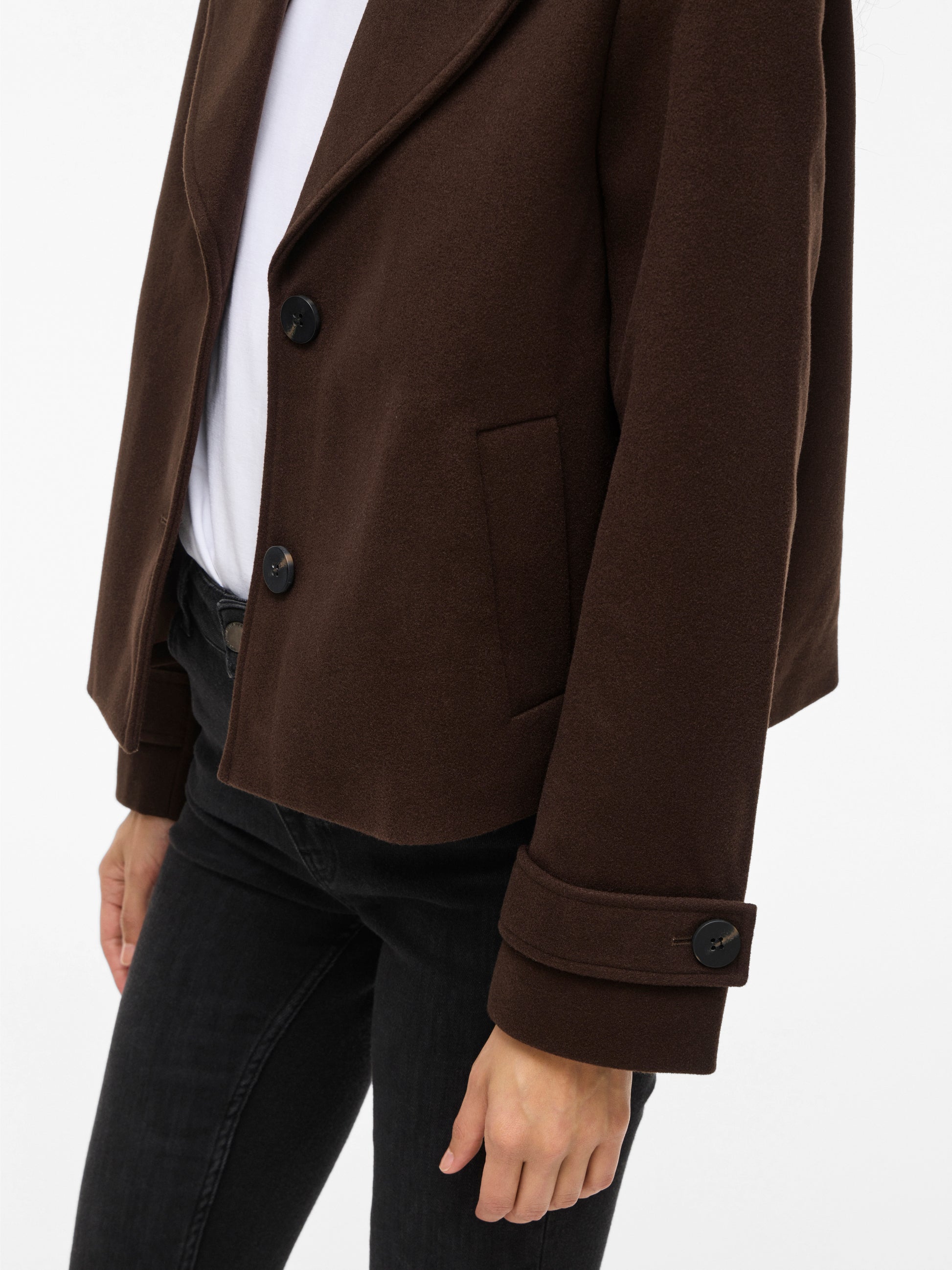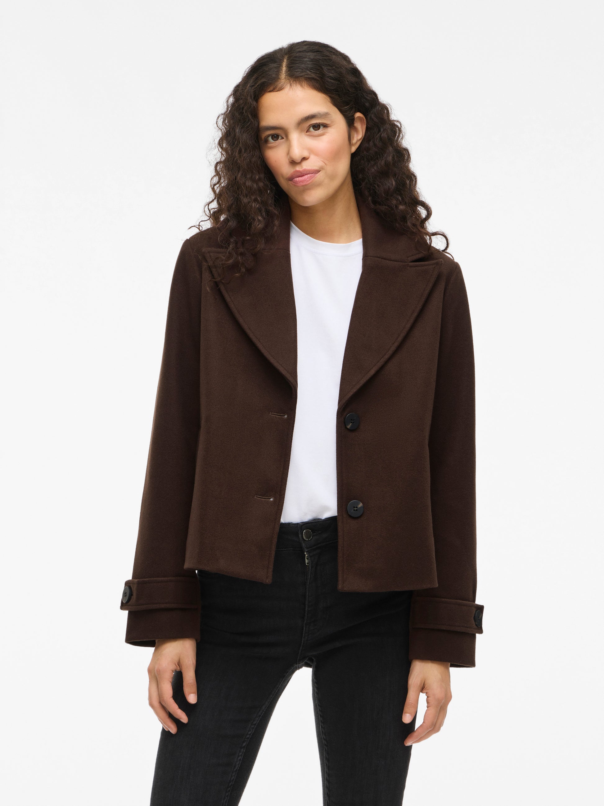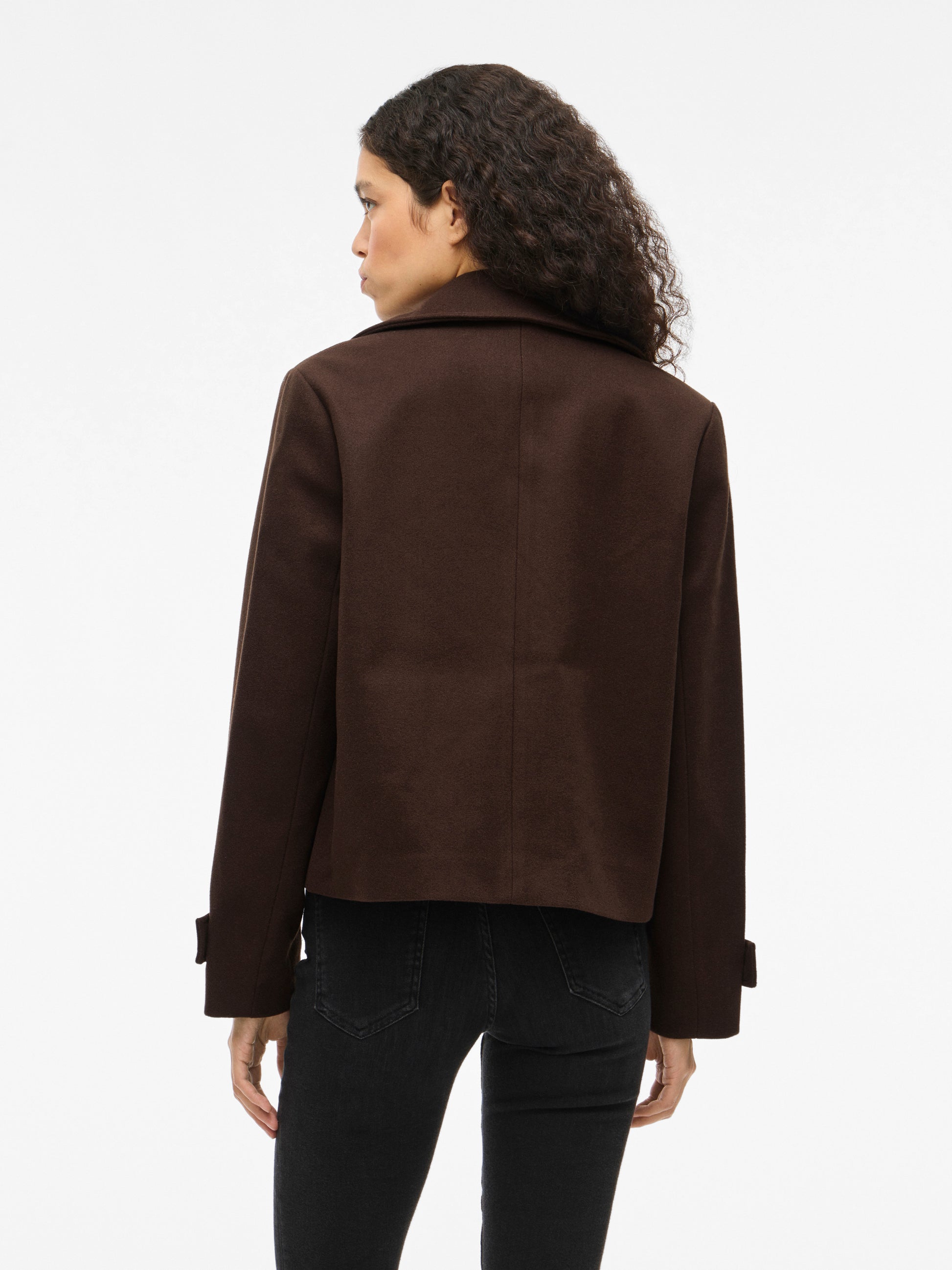 Abrigo de paño mini en color marrón chocolate.