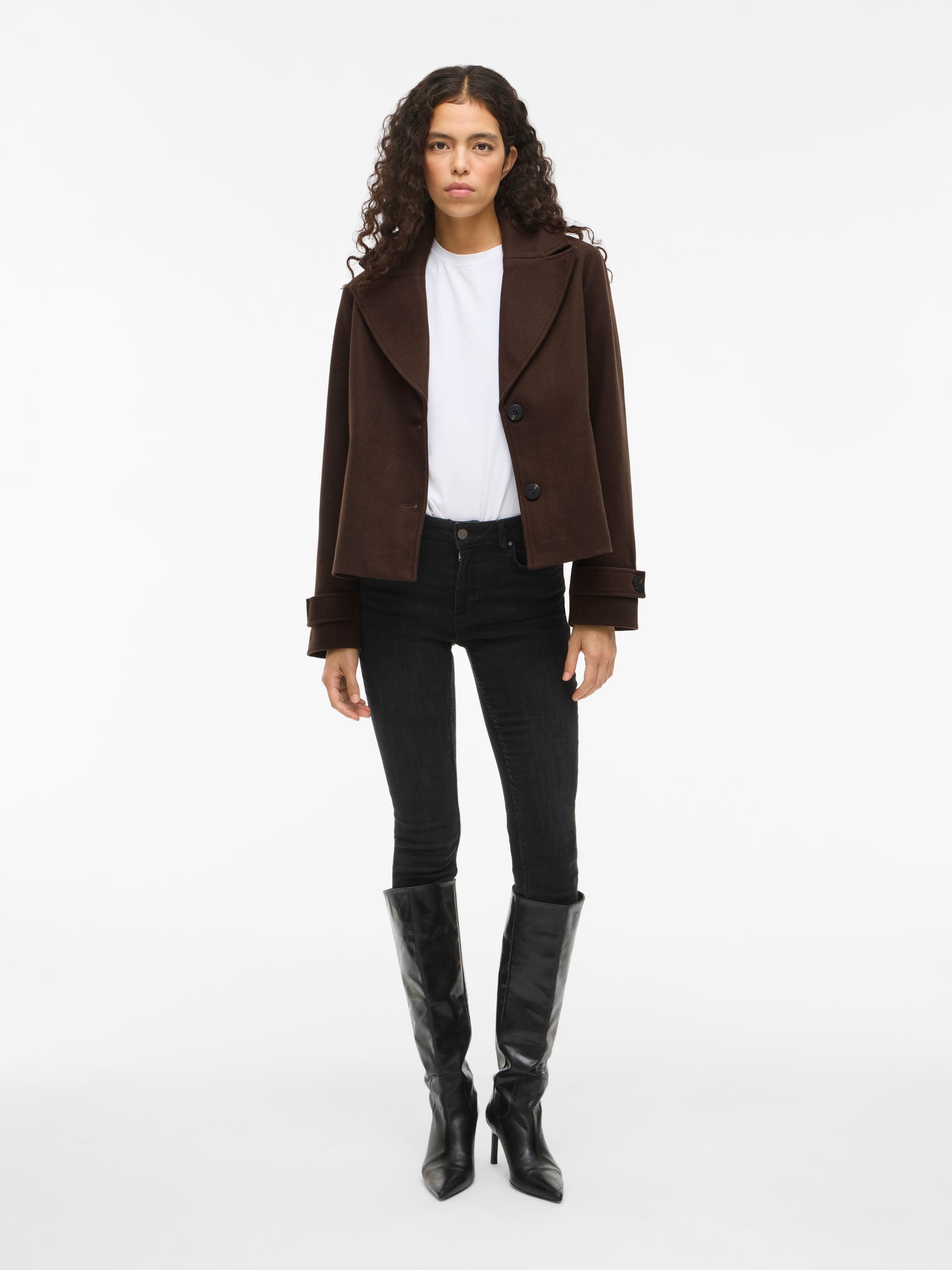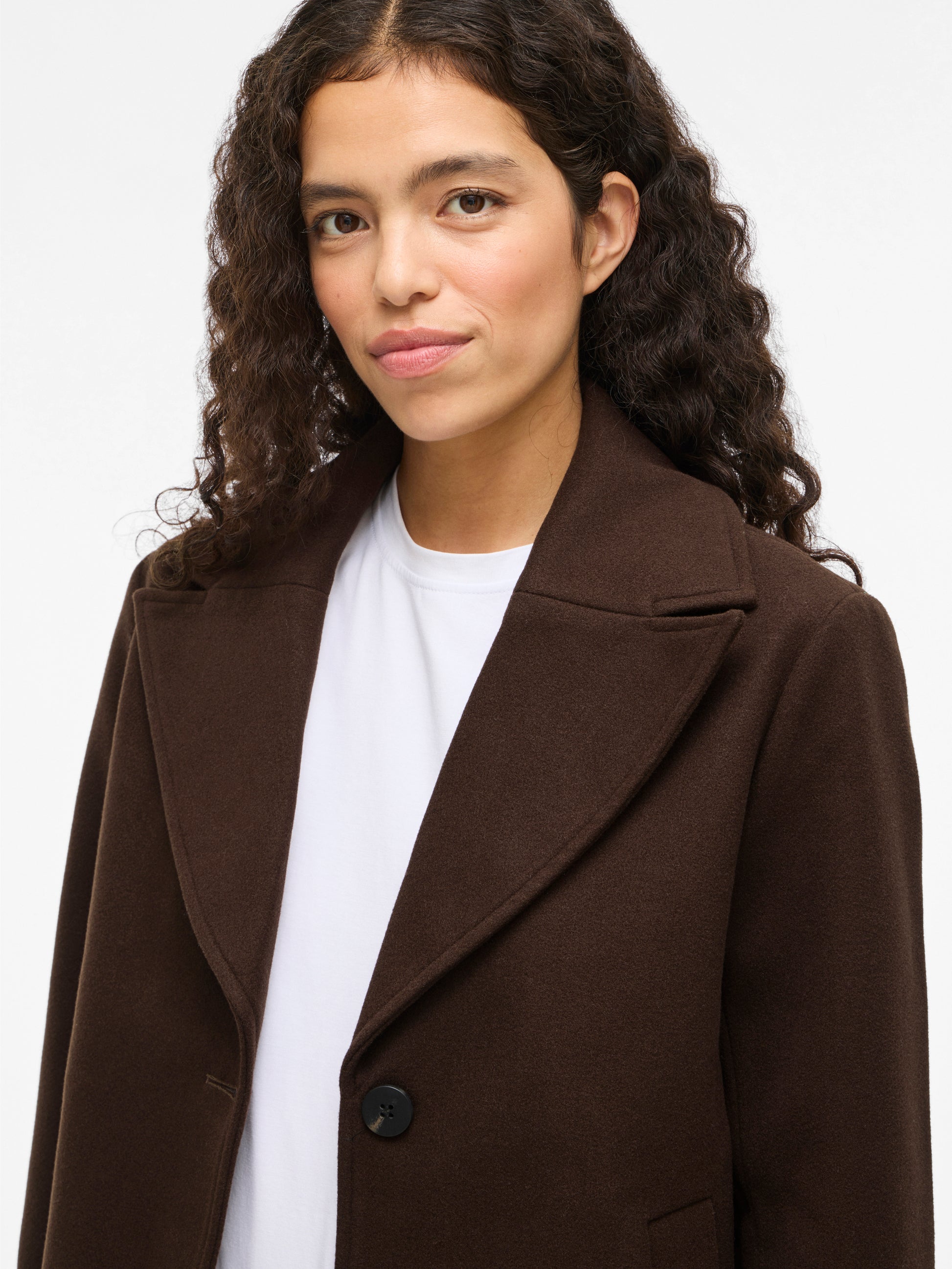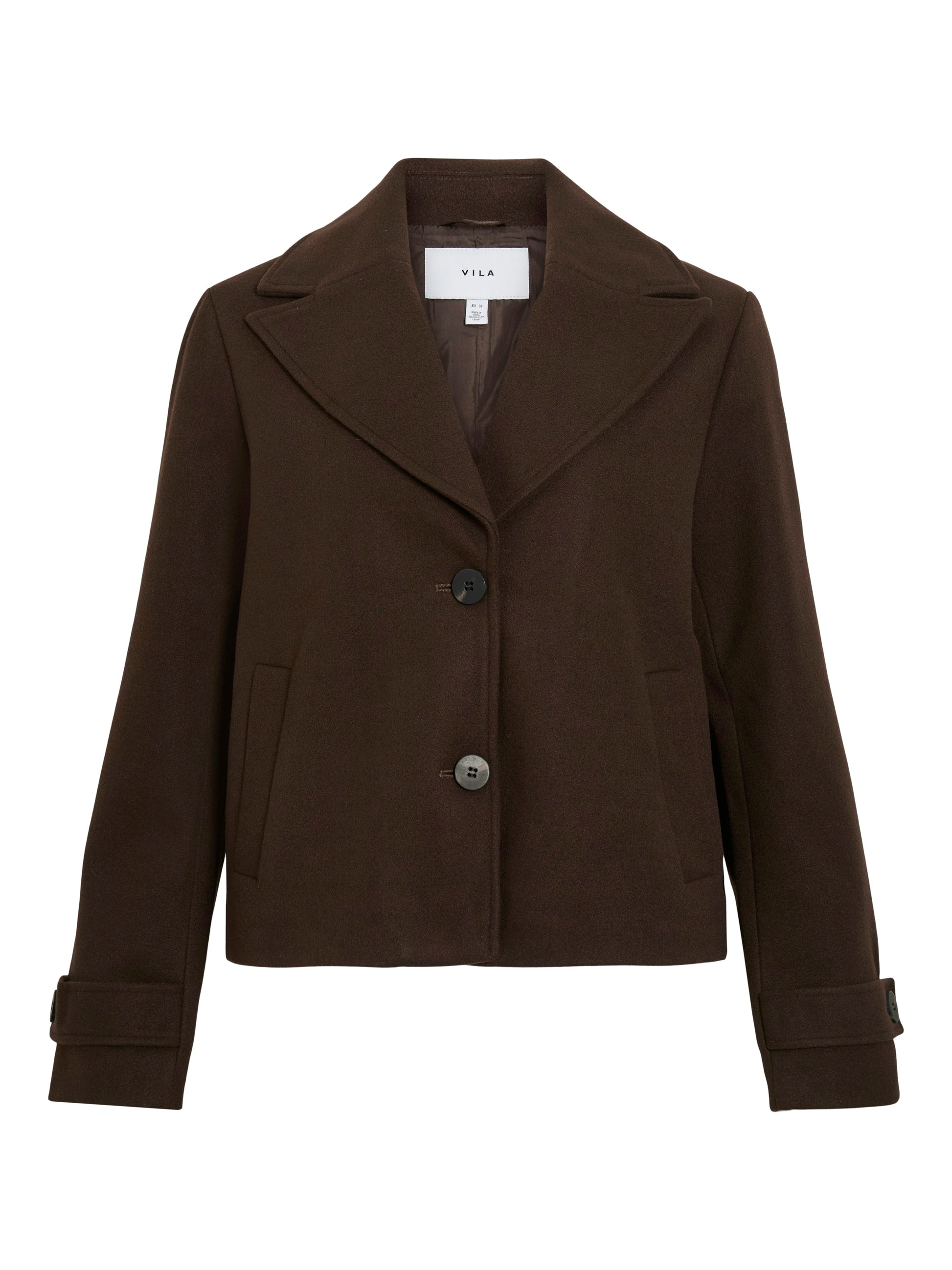 Abrigo de paño mini en color marrón chocolate.