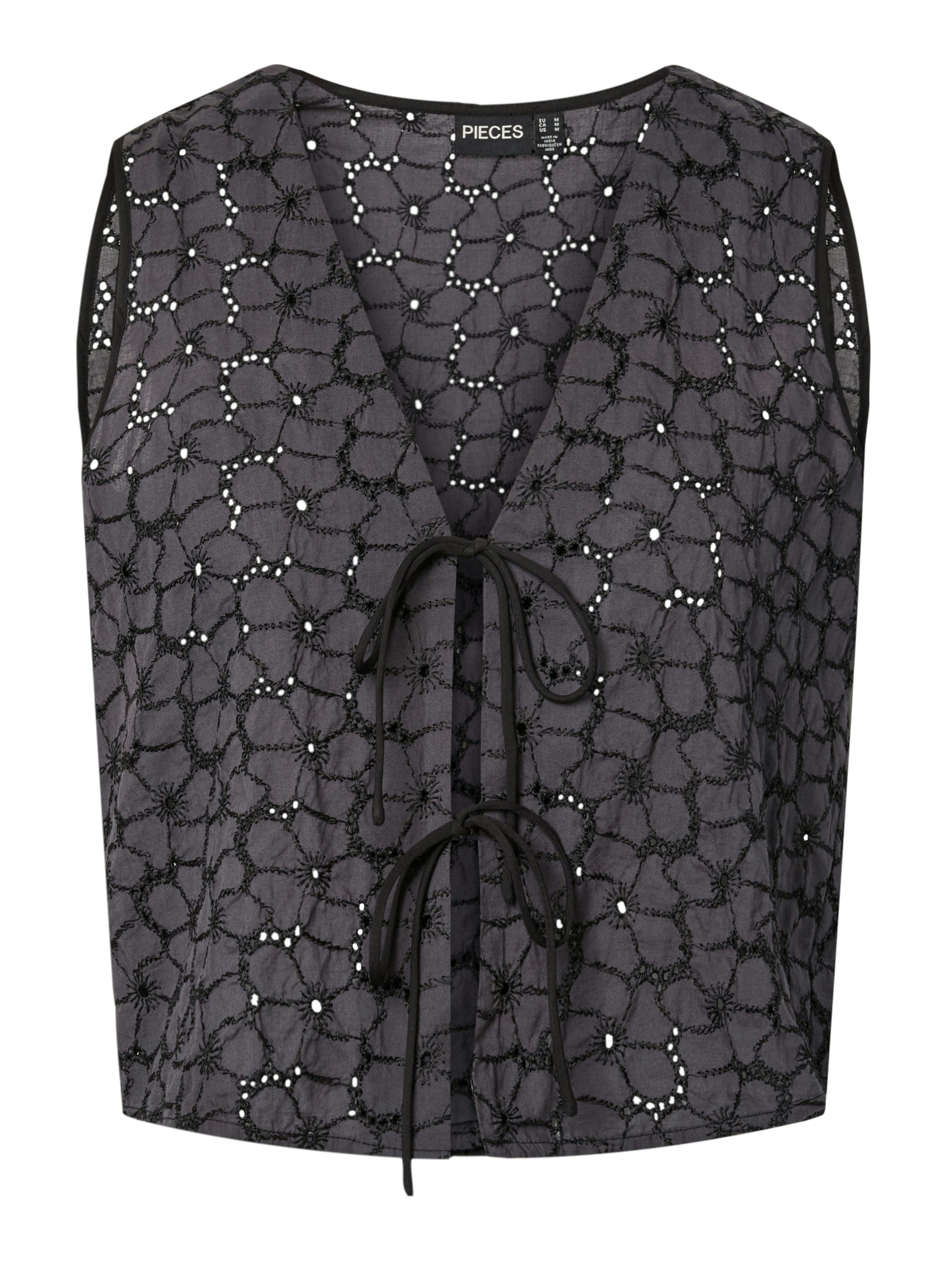 Conjunto en negro calado, con cierre de doble lazada y pantalón con goma en cintura para un increíble ajuste y comodidad.