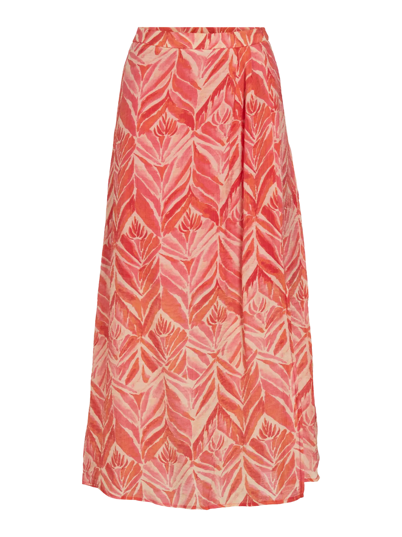 Ideal falda estampada en tonos rojizos.