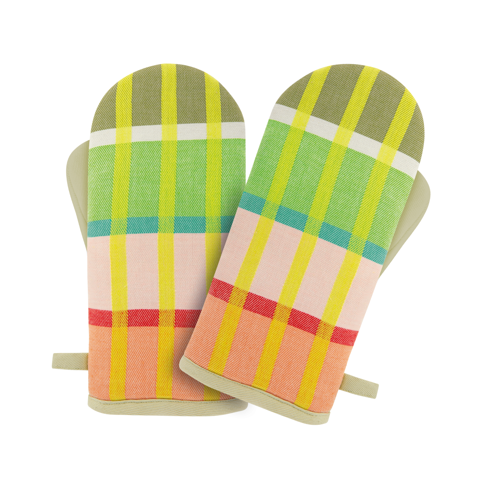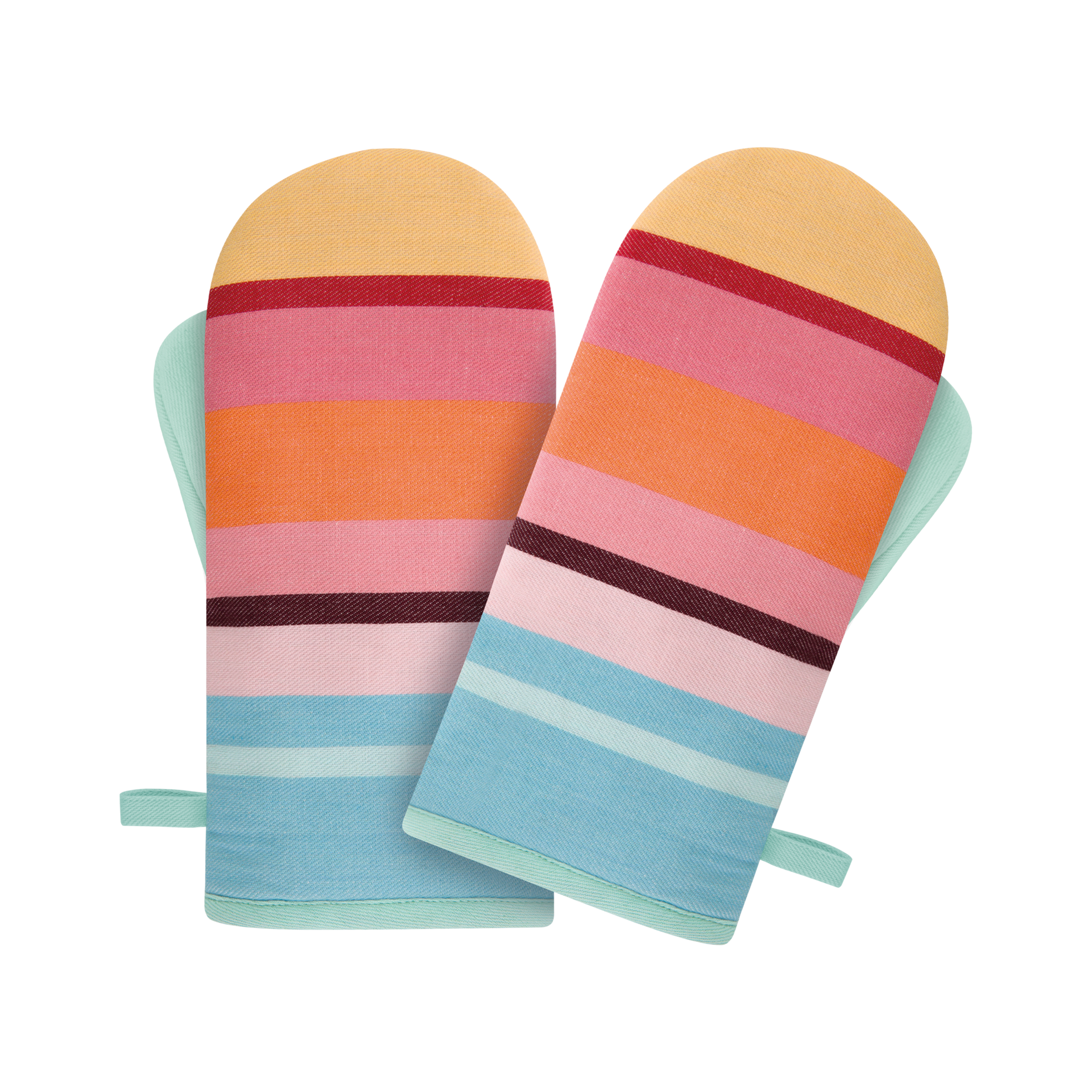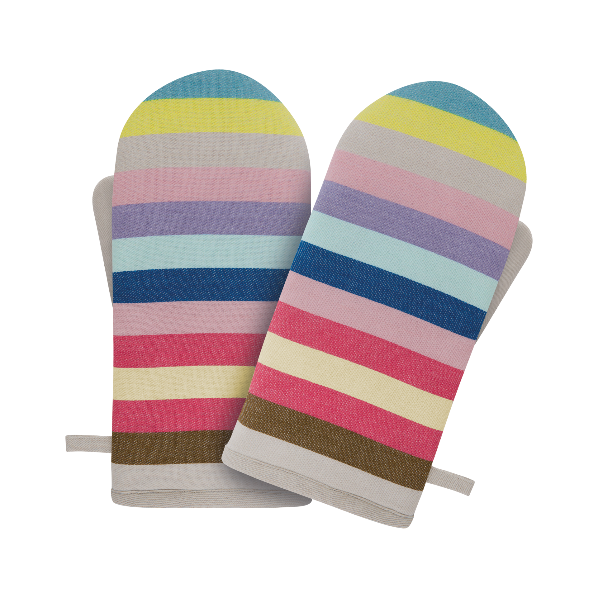 Hornear, cocinar, chisporrotear, asar a la parrilla: los guantes para horno de REMEMBER® ofrecen una protección térmica segura al manipular utensilios de cocina calientes. El básico de cocina se compone de un juego de 2 con diseños de rayas de diferentes colores a juego y es un bonito complemento a la colorida serie de paños de cocina.