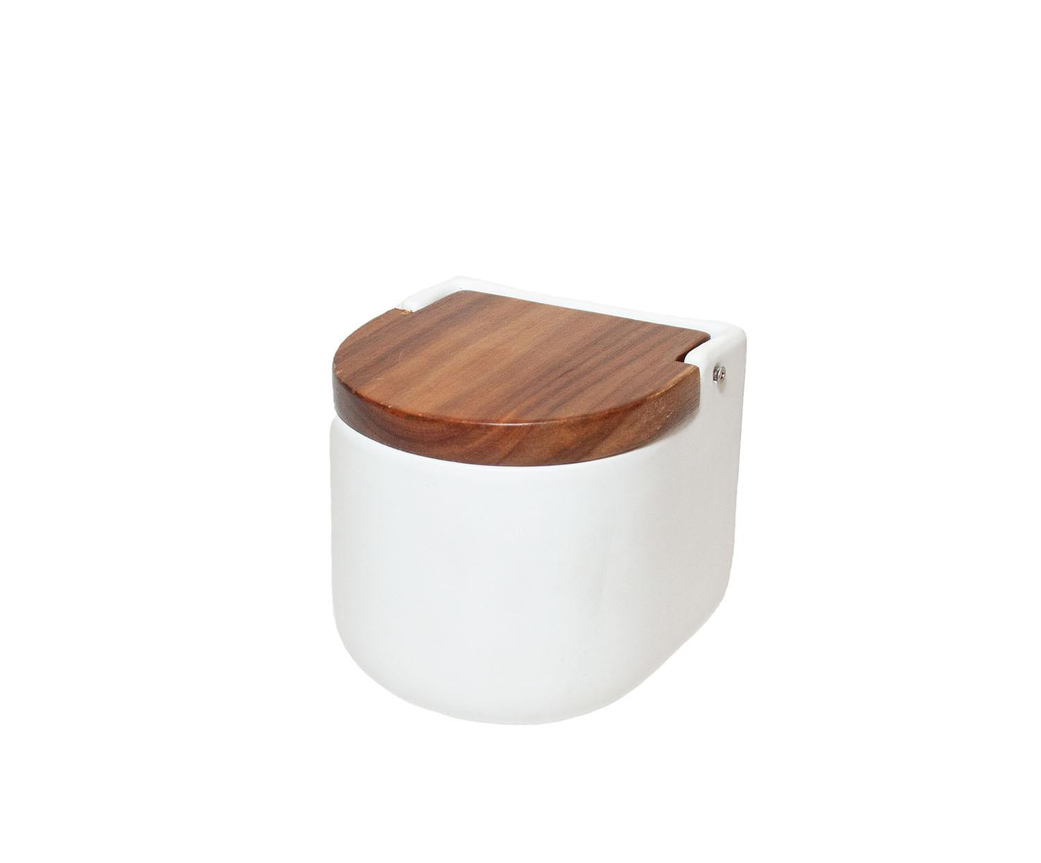Salero fabricado en acacia y ceramica con 600ml de capacidad.