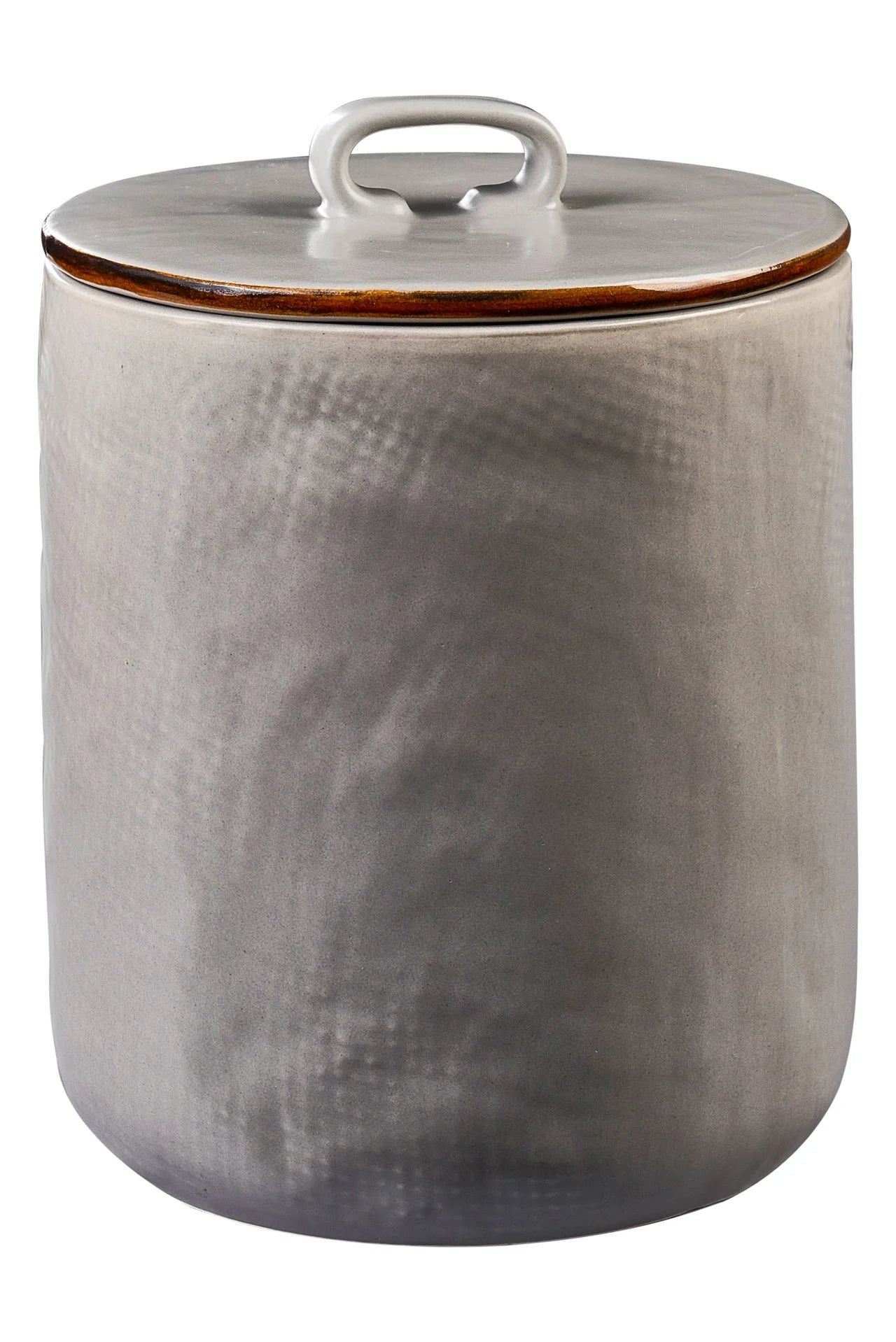 Tarro de almacenamiento fabricado en gres. Disponible en ocho colores. Apto para microondas y lavavajillas.